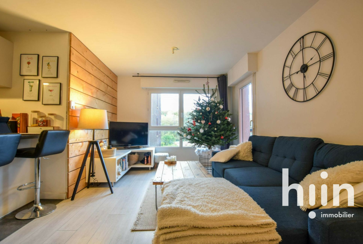 hiin immobilier vous propose un appartement chaleureux de 49 m² au 1er étage avec ascenseur d’une résidence calme et à proximité immédiate des commerces. Vous y découvrirez une entrée avec rangements, un beau séjour de 21 m² exposé ouest avec balcon, une grande cuisine A/E, une chambre avec placard ainsi qu’une salle douche et WC séparés.